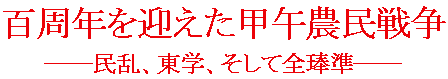 甲午農民戦争(かつては「東学党の乱」とよばれた)は、決して偶発的に起こった事件ではない。すでに命脈尽きかけていた王朝権力のもとで、農民からの収奪は過酷なものとなり、開国(一八七六年)がもたらしたインフレーションは民衆の生活苦にいっそう拍車をかけた。国家は民衆を統制する力を急速に失い、朝鮮の一九世紀は「民乱の世紀」と呼ばれるほど、各地で農民反乱が頻発した時代であった。そして民衆宗教としての東学は、人間の平等と世直しを訴えることで、地域ごとバラバラにくりひろげられていた民乱を、一つにまとめあげる理念と組織を提供した。有能な指導者が周到な準備をもって挙兵すれば、朝鮮全土にいっせいに反乱の火の手が上がる条件は、充分に整っていたのである。